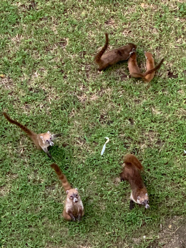 I was delighted to see that the resort worked in harmony with the natural inhabitants that were living on the 1000 acre property. We marveled at the parrots that flew in during the mornings, picking away at berries in the trees and squawking about it. Iguanas sunned themselves on the walkways throughout the grounds, and coatimundis came out at dusk to forage for food and play in the surrounding landscape.