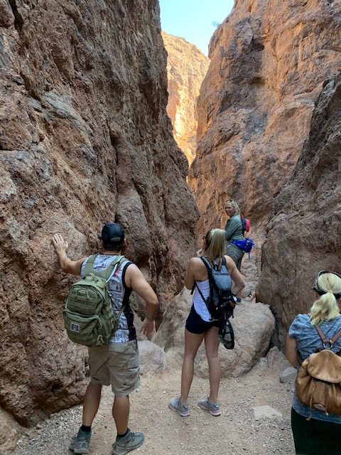 The trail had just opened for the fall and winter months, and we were excited to be one of the first hikers to reenter the canyon. Excessive heat during the summer was fatal for hikers, and many desert trails had been closed. We still brought plenty of water, sunscreen, and snacks. The temperature was going to reach a high of 90 degrees. That was still warm for October.