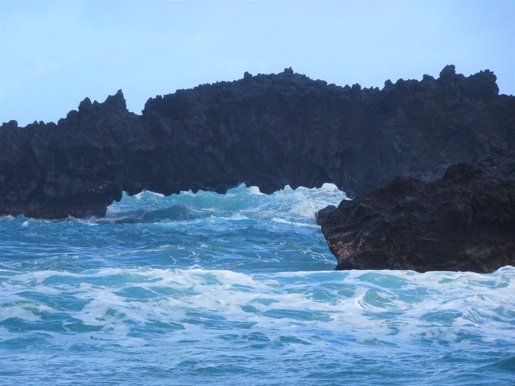 Number 5, wander the grounds of a 150 year old stone and coral church on the Ke’anae Peninsula and then stop by Aunty Sandy’s for her famous banana bread. Ke’anae Peninsula is a short detour off the Hana Highway, but it’s worth it. Another opportunity to get out and stretch your legs, the church stands beside the stark, rugged beauty of an old lava flow frozen against the ocean. Jagged, dark pinnacles break through the water and sea spray fills the air.