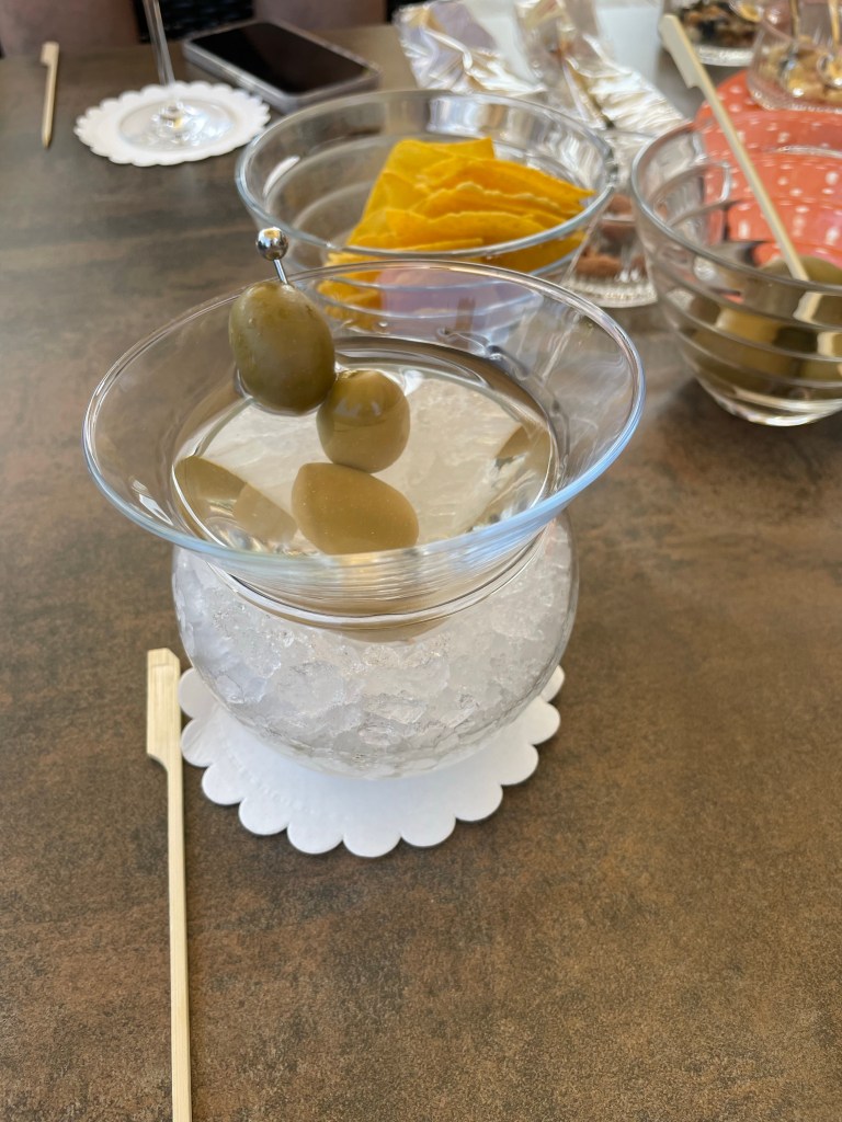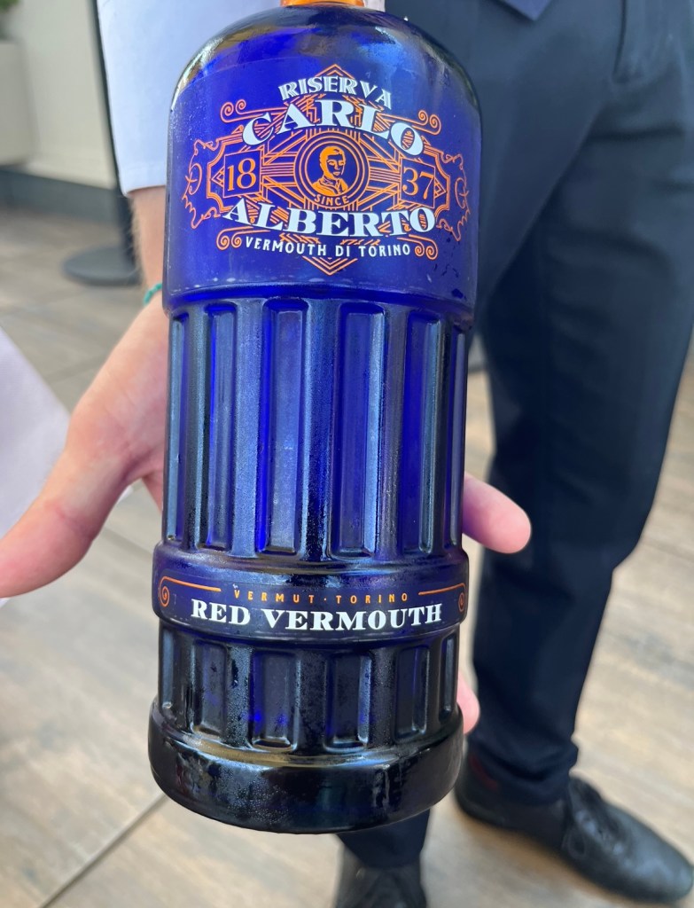 Turin had many culinary surprises for us. It is the birthplace of Vermouth, and we found local bars thrilled to introduce their collection. Customary as an aperitivo (aperitif), we enjoyed a pre-dinner drink and an antipasto on our first night in Turin. The Italians were generous with their appetizers which are always served with a drink at no extra charge. A bowl of large green olives, a few cured meats, and bread was a great starter. The experience was at our hotel, the Turin Palace Hotel. After a long day of travel, going to the rooftop bar was a pleasant treat.