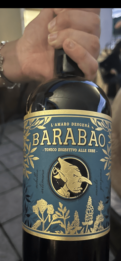 The surrounding buildings and the road below grew somber and quiet as the landscape darkened to a midnight blue. A few lights twinkled in the distance. The evening ended with an order of dessert and Digestivos. My praise goes out to the Tiramasu. L’ Amaro Desgena Barabao was a hit with the guys. As I looked across into the stillness of the night, I felt as if we were the only people on earth happy and content.