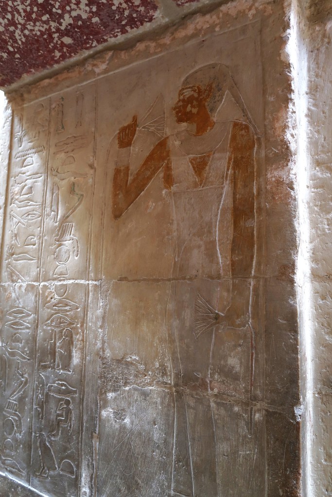 Once inside the Complex, the roads widened with new pavement. General admission tickets covered entrance fees with access to a few tombs or mastabas. Mastabas, I was informed, are Egypt’s earliest form of tomb. They are rectangular, low-lying structures with flat roofs made of brick or stones. We could access additional tombs for an extra charge.