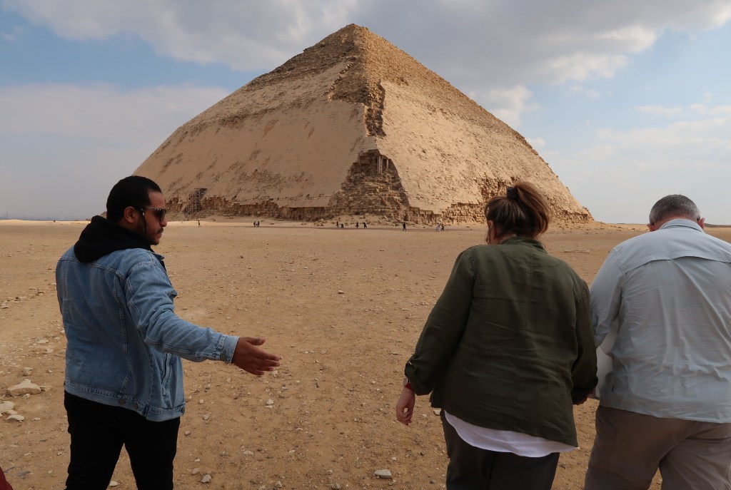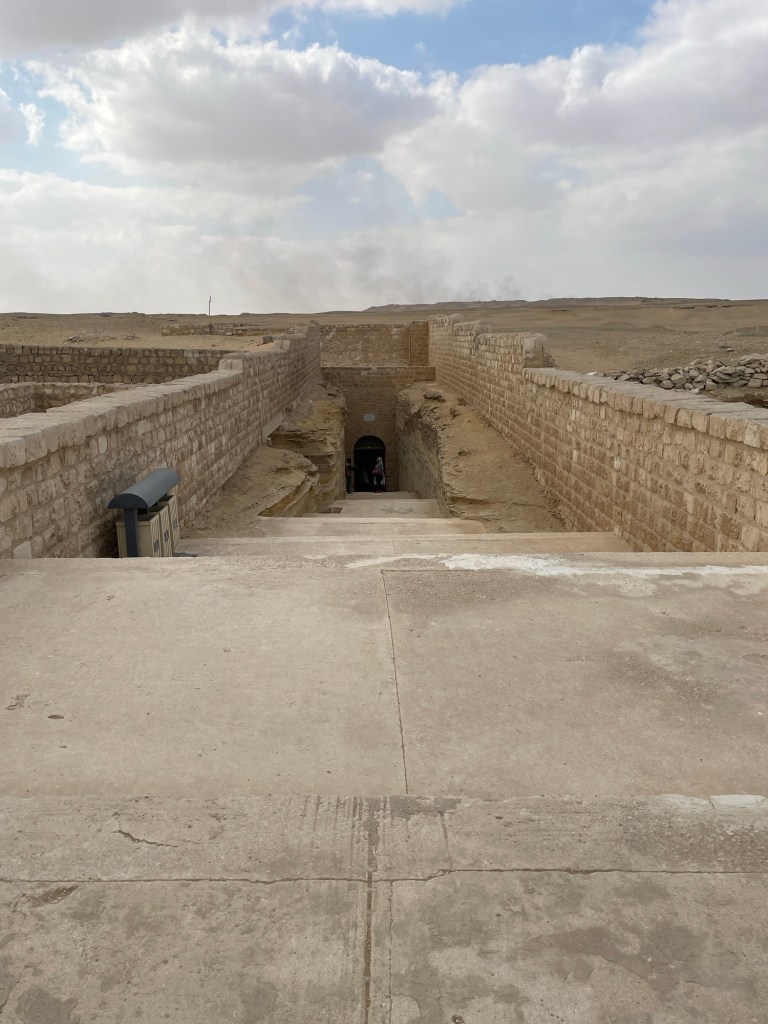 During our visit to Dahshur, we had the opportunity to explore several pyramids. Among them, we saw the infamous “Black Pyramid” and caught a glimpse of the pyramids of Senurset III and Pepi II in the distance. While the inside of the Bent Pyramid and the Red Pyramid are open, we decided not to explore them since there is nothing to see inside. To access the inside of these pyramids, one has to climb stairs that zig-zag up the slopes of the structure.