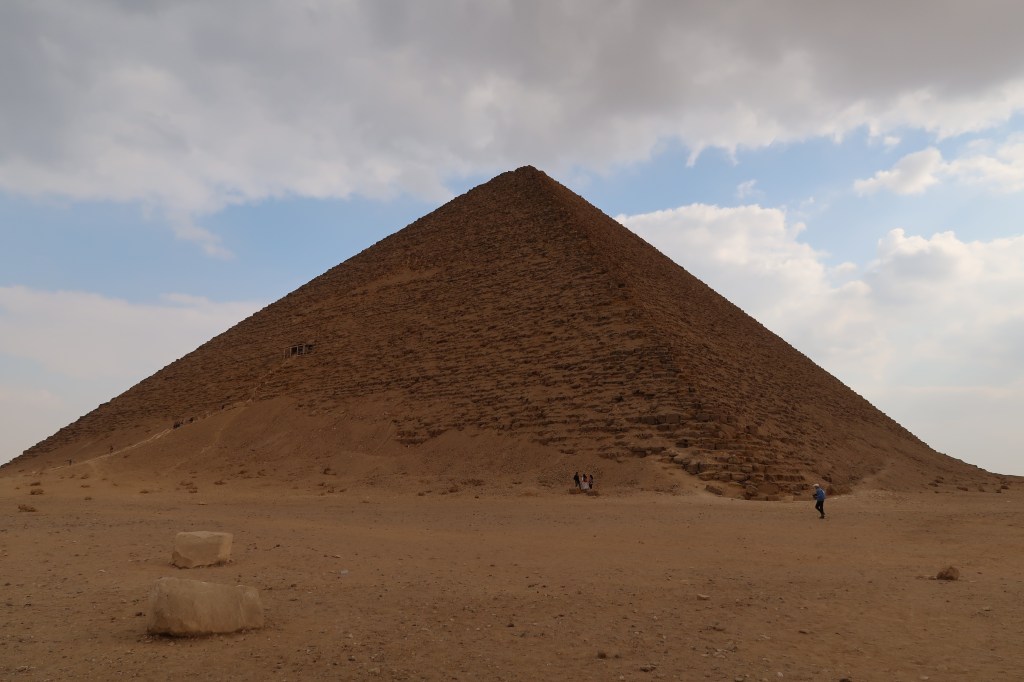 The Bent Pyramid was the first attempt to create a structure with sloping sides. Built under the direction of King Snefru in the 4th Dynasty (2575-2465 BC), a miscalculation on the angle of the slopes caused a design change further up, creating a bent appearance. King Snefru was not one to give up. Another pyramid structure was built with again structural flaws. The slopes attained structural integrity on the King’s third attempt, reflected in the Red Pyramid. The Red Pyramid set the standard for pyramids thereafter.