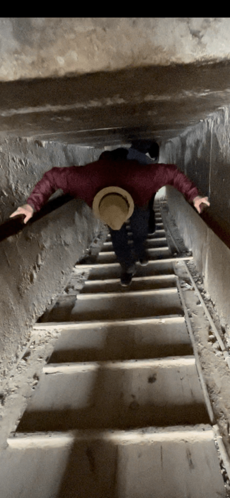 Walking around the pyramid’s base, we could climb up to the entrance leading into the inner chambers. Uneven steps in the stone created a path resembling an upside-down U, which allowed folks to climb the pyramid without entering it. Here, you could get a feel for the engineering scale achieved by the builders as you stood almost a third of the way to the top.